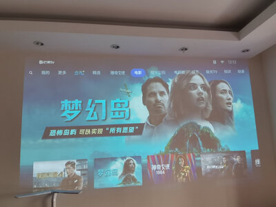 4、明基GV30投影仪在开灯和关灯的情况下播放的效果,把墙面上的电视机拆下后,墙上洼洼用补墙漆补了一下影响了效果,得赶紧把幕布搞回来,效果肯定不错!运行了几天,噪音可接受,白天投影效果也不错,性价比超级高!千元投影仪,相当不错了,白天也很清晰,推荐入手,家用完全足够