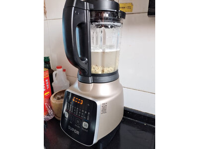 4、苏泊尔SP608S破壁机到了老婆就想马上试,不过花生干需要热水泡4个小时,就晚上泡起来第二天早上打,热杯加热的温度很高,选,打起来是很细的,口感细腻,原味清淡,加纯牛奶在微波加热下口感更好了,很好的花生牛奶洗的时候还是要拆洗,完全靠除菌洗,是洗不干净,需要自己手洗,头可以拆