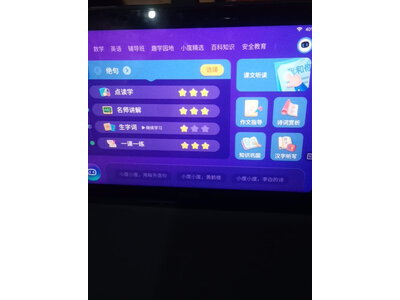 4、步步高s7学生平板画质很清,看久了眼睛也不累,电池比较没用,正好近自己在学习可以下载第三方app听课,很方便,里边儿童学习的有视频讲解,也有课文阅读,用来学英语还是挺好的,还可以讲绘本买的学习机收到了,外观精美好看,孩子非常喜欢,学习内容齐全,学习英语和拼音的好帮手,物美价廉,值得购买,非常愉快的一次购物