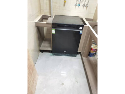 3、华凌VIE0洗碗机发货快的商品,收到后确实很重,黑色面板非常大气,做工到位,很大,碗够放,后续装修好再预约上门安装。