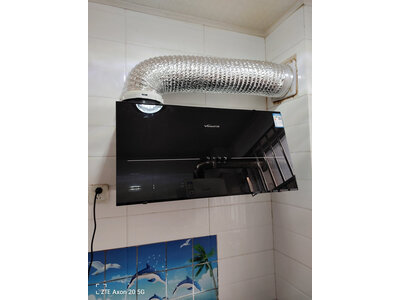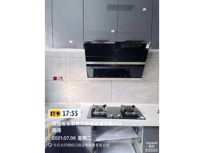 3、老板28D7S油烟机实物装起来位置刚刚好,吸力也挺大的,挥手开机也很方便,总体上来说是很满意的,而且上门安装的师傅服务也很好