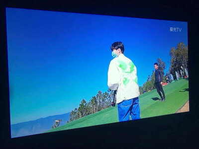 3、明基E520投影仪非常满意,我家配的是菲斯特的菲涅尔幕布,效果非常棒,自我感觉不比电视差,重要是4g内存,系统很流畅,值得购买,可以看看我家效果