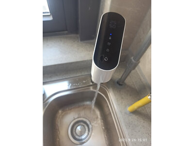 5、海尔净水器hro10h11和hro10h99的净水器已经安装完毕,大小合适,正好放在橱柜里面,白色的外观很漂亮出水龙头安装在水槽左上角原来洗洁精的位置,完全不需要打孔!出水速度也不错总之是一次很好的购物体验